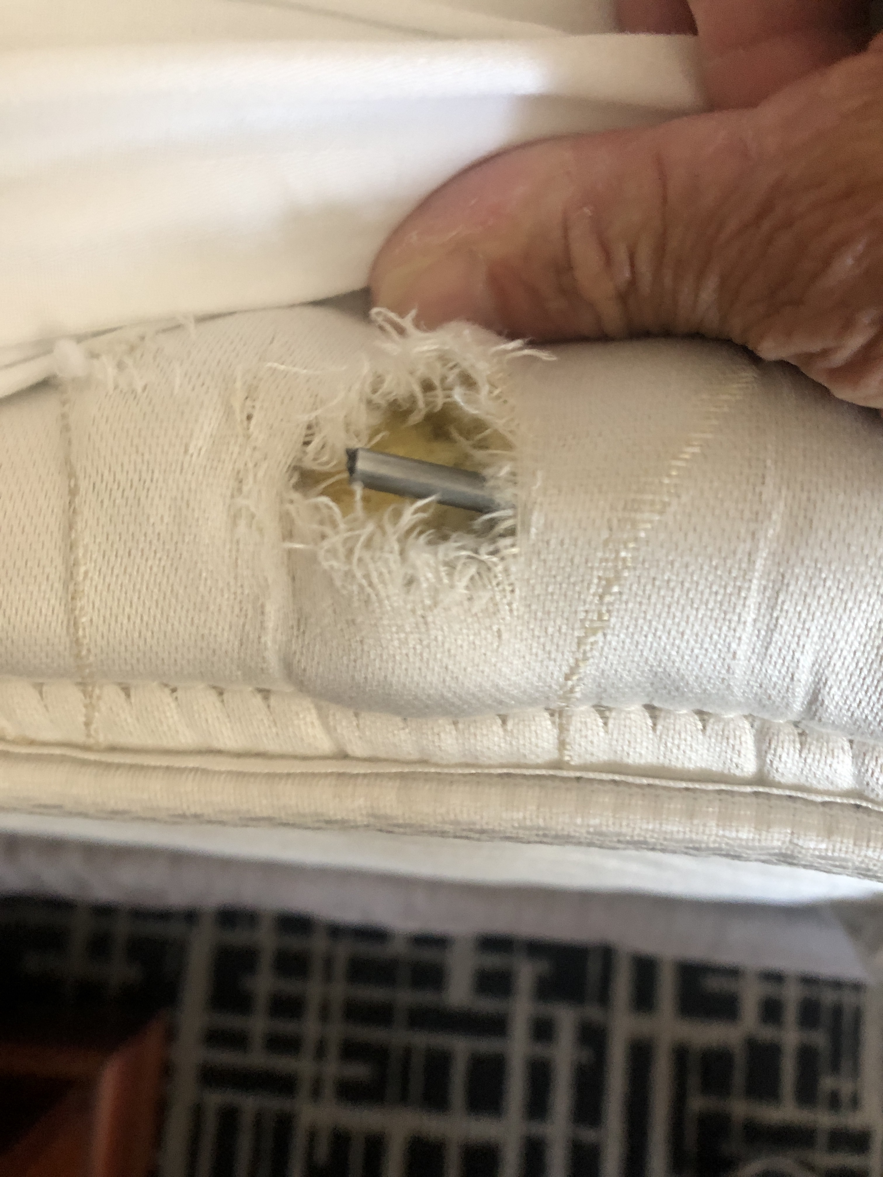 Our first hotel in Deming was a bit iffy! After we checked into our room I noticed the bed had something very sharp sticking out of it. I took a picture and went down to the desk to ask for a new room.